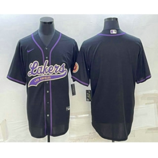 Men's Los Angeles Lakers Blank Black Cool Base Stitched Baseball Jersey