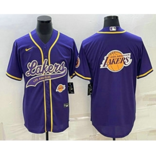 Men's Los Angeles Lakers Purple Team Big Logo With Cool Base Stitched Baseball Jersey