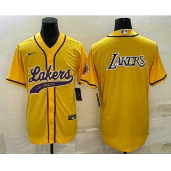 Men's Los Angeles Lakers Yellow Big Logo Cool Base Stitched Baseball Jerseys