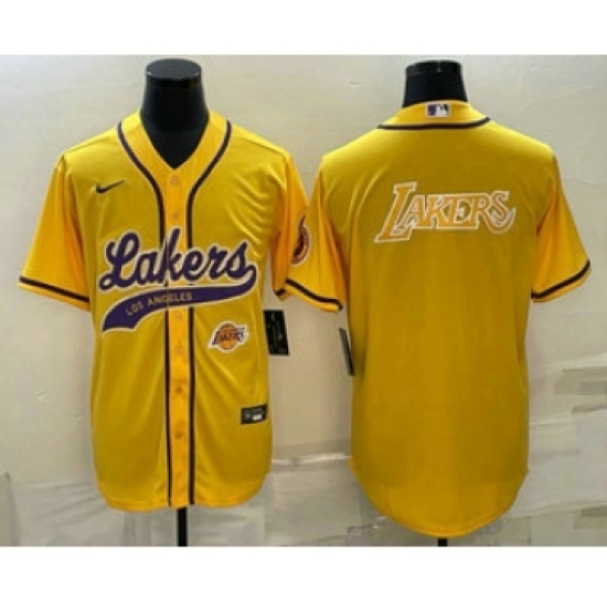 Men's Los Angeles Lakers Yellow Team Big Logo Cool Base Stitched Baseball Jersey