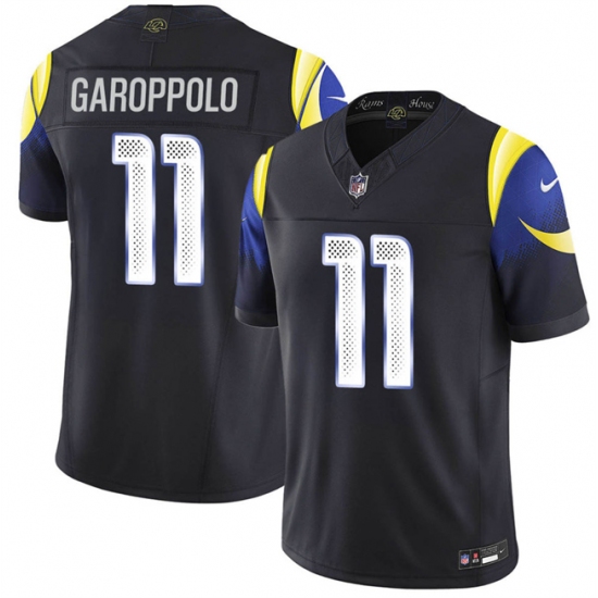 >Men's Los Angeles Rams #11 Jimmy Garoppolo Black 2025 F.U.S.E. “Rivalries” Vapor Limited Football Stitched Jersey