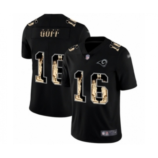 Men's Los Angeles Rams #16 Jared Goff Limited Black Statue of Liberty Football Jersey