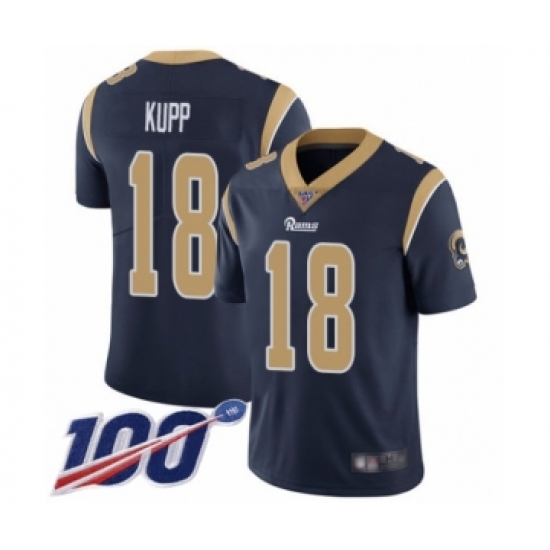 >Men's Los Angeles Rams #18 Cooper Kupp Navy Blue Team Color Vapor Untouchable Limited Player 100th Season Football Jersey