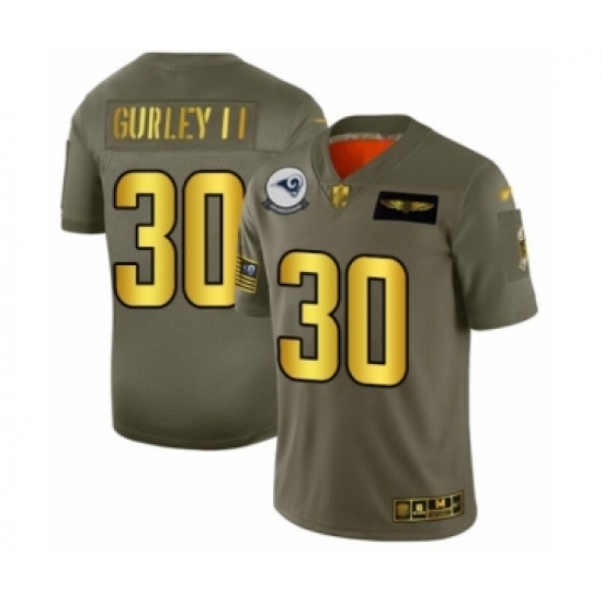 Men's Los Angeles Rams #30 Todd Gurley Olive Gold 2019 Salute to Service Limited Player Football Jersey