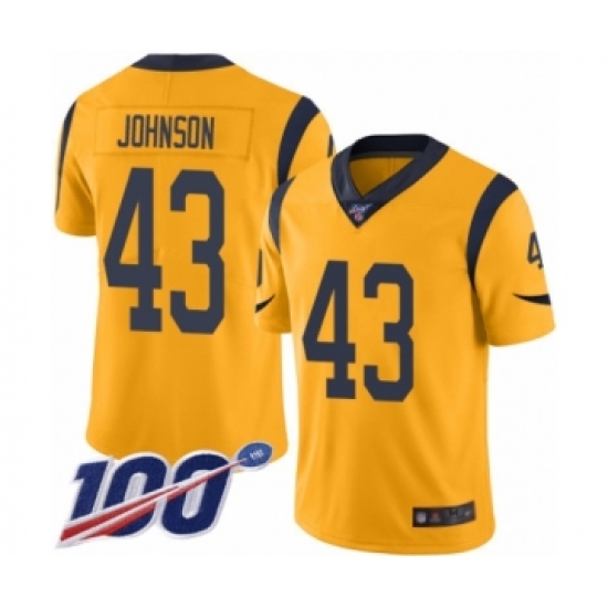 >Men's Los Angeles Rams #43 John Johnson Limited Gold Rush Vapor Untouchable 100th Season Football Jersey