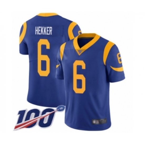 Men's Los Angeles Rams #6 Johnny Hekker Royal Blue Alternate Vapor Untouchable Limited Player 100th Season Football Jersey