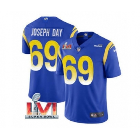 >Men's Los Angeles Rams #69 Sebastian Joseph-Day Royal 2022 Super Bowl LVI Vapor Limited Stitched Jersey
