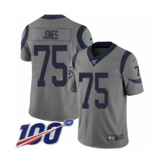 Men's Los Angeles Rams #75 Deacon Jones Limited Gray Inverted Legend 100th Season Football Jersey