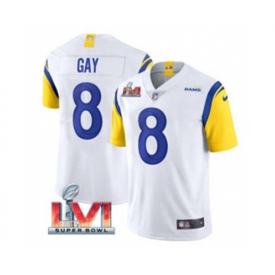 Men's Los Angeles Rams #8 Matt Gay White 2022 Super Bowl LVI Vapor Limited Stitched Jersey