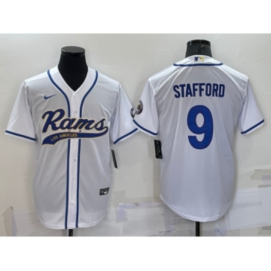 >Men's Los Angeles Rams #9 Matthew Stafford White Stitched Cool Base Nike Baseball Jersey