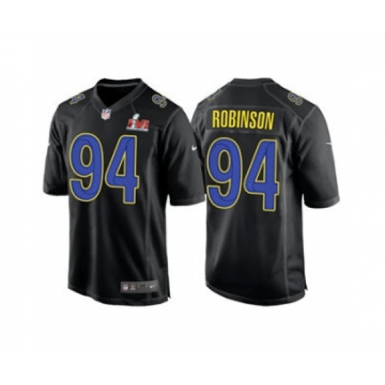 Men's Los Angeles Rams #94 A'Shawn Robinson Black 2022 Super Bowl LVI Game Stitched Jersey