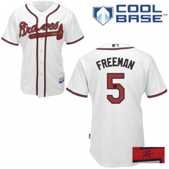 Home>MLB>Atlanta Braves>Freddie Freeman>Men's Majestic Atlanta Braves #5 Freddie Freeman Authentic White Home Cool Base Autographed MLB Jersey