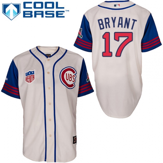 Home>MLB>Chicago Cubs>Kris Bryant>Men's Majestic Chicago Cubs #17 Kris Bryant Authentic Cream/Blue 1942 Turn Back The Clock MLB Jersey
