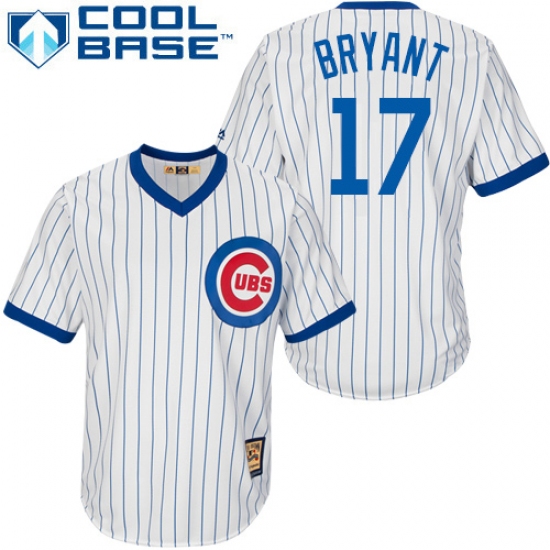 Home>MLB>Chicago Cubs>Kris Bryant>Men's Majestic Chicago Cubs #17 Kris Bryant Authentic White Home Cooperstown MLB Jersey