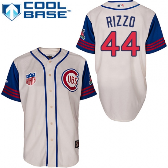 Home>MLB>Chicago Cubs>Anthony Rizzo>Men's Majestic Chicago Cubs #44 Anthony Rizzo Authentic Cream/Blue 1942 Turn Back The Clock MLB Jersey