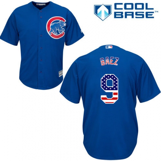 Home>MLB>Chicago Cubs>Javier Baez>Men's Majestic Chicago Cubs #9 Javier Baez Replica Royal Blue USA Flag Fasion MLB Jersey