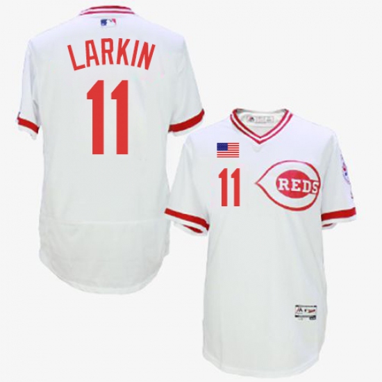 Home>MLB>Cincinnati Reds>Barry Larkin>Men's Majestic Cincinnati Reds #11 Barry Larkin White Flexbase Authentic Collection Cooperstown MLB Jersey