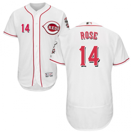 Men's Majestic Cincinnati Reds #14 Pete Rose White Home Flex Base Authentic Collection MLB Jersey