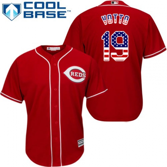 Home>MLB>Cincinnati Reds>Joey Votto>Men's Majestic Cincinnati Reds #19 Joey Votto Replica Red USA Flag Fashion Cool Base MLB Jersey
