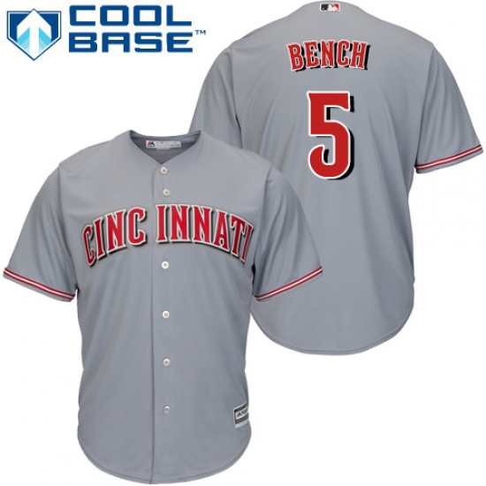 Men's Majestic Cincinnati Reds #5 Johnny Bench Replica Grey Road Cool Base MLB Jersey