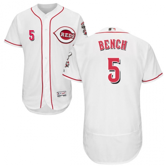 Men's Majestic Cincinnati Reds #5 Johnny Bench White Home Flex Base Authentic Collection MLB Jersey