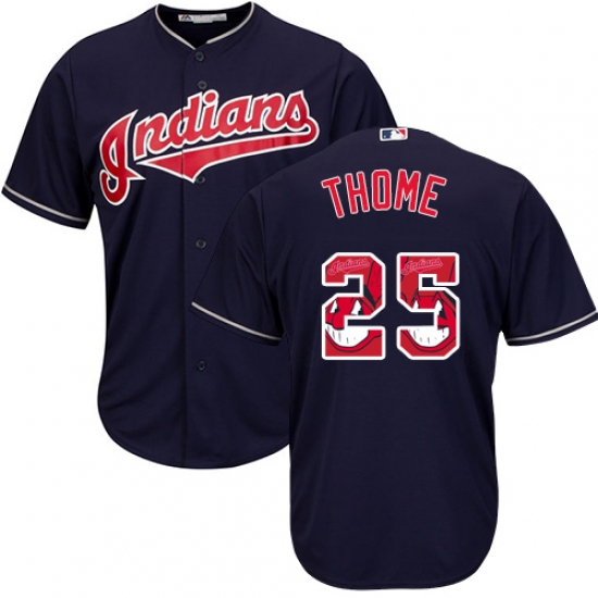 Home>MLB>Cleveland Indians>Jim Thome>Men's Majestic Cleveland Indians #25 Jim Thome Authentic Navy Blue Team Logo Fashion Cool Base MLB Jersey