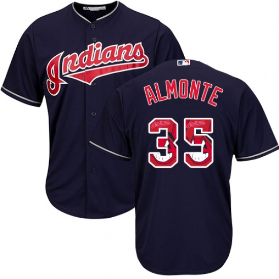 Home>MLB>Cleveland Indians>Abraham Almonte>Men's Majestic Cleveland Indians #35 Abraham Almonte Authentic Navy Blue Team Logo Fashion Cool Base MLB Jersey