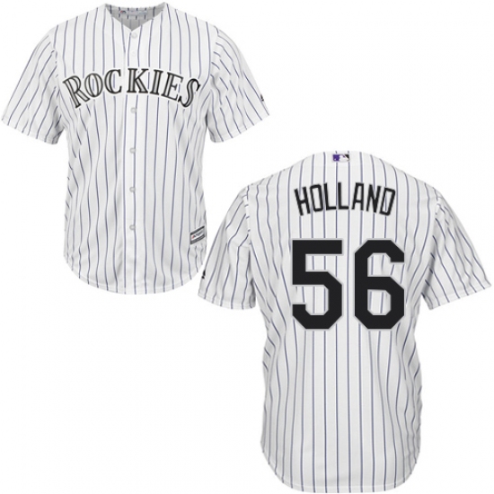 Home>MLB>Colorado Rockies>Greg Holland>Men's Majestic Colorado Rockies #56 Greg Holland Replica White Home Cool Base MLB Jersey