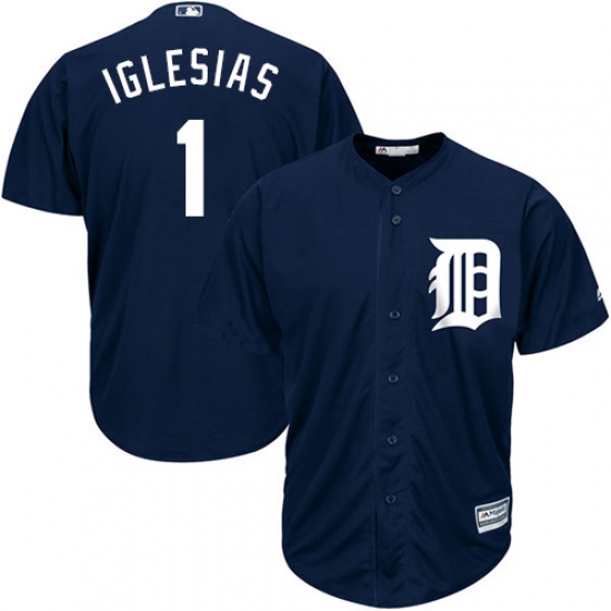 Men's Majestic Detroit Tigers #1 Jose Iglesias Replica Navy Blue Alternate Cool Base MLB Jersey