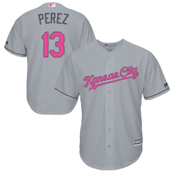 Men's Majestic Kansas City Royals #13 Salvador Perez Replica Grey 2016 Mother's Day Cool Base MLB Jersey