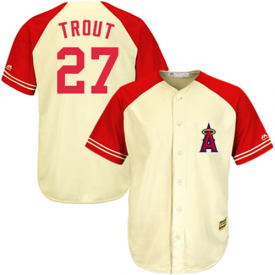 Men's Majestic Los Angeles Angels of Anaheim #27 Mike Trout Replica Cream/Red Exclusive MLB Jersey