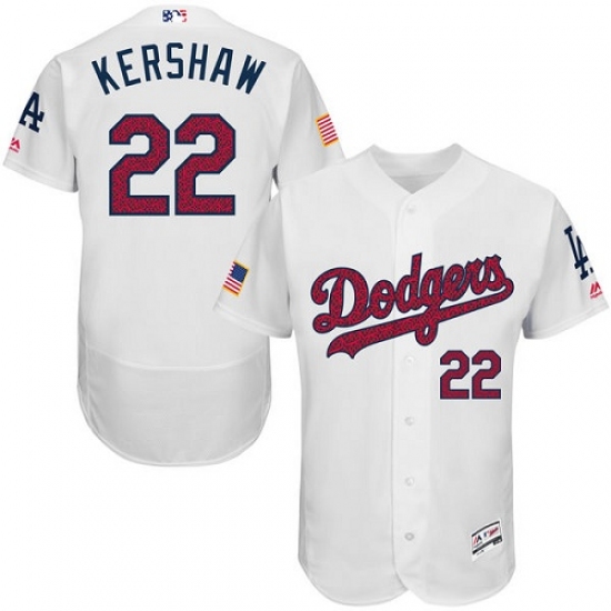 Home>MLB>Los Angeles Dodgers>Clayton Kershaw>Men's Majestic Los Angeles Dodgers #22 Clayton Kershaw White Fashion Stars & Stripes Flex Base MLB Jersey