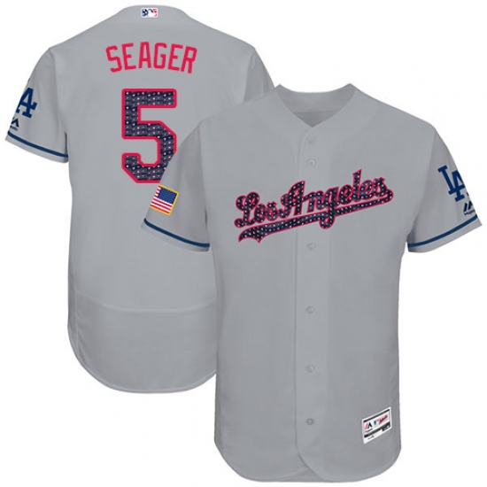 Home>MLB>Los Angeles Dodgers>Corey Seager>Men's Majestic Los Angeles Dodgers #5 Corey Seager Authentic Grey Stars & Stripes Authentic Collection Flex Base MLB Jersey