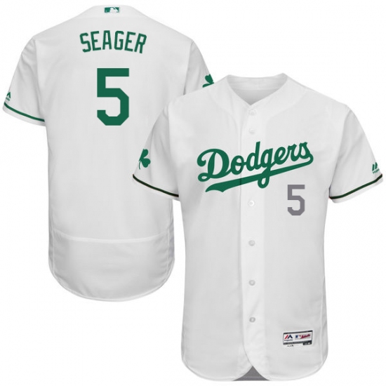 Home>MLB>Los Angeles Dodgers>Corey Seager>Men's Majestic Los Angeles Dodgers #5 Corey Seager White Celtic Flexbase Authentic Collection MLB Jersey