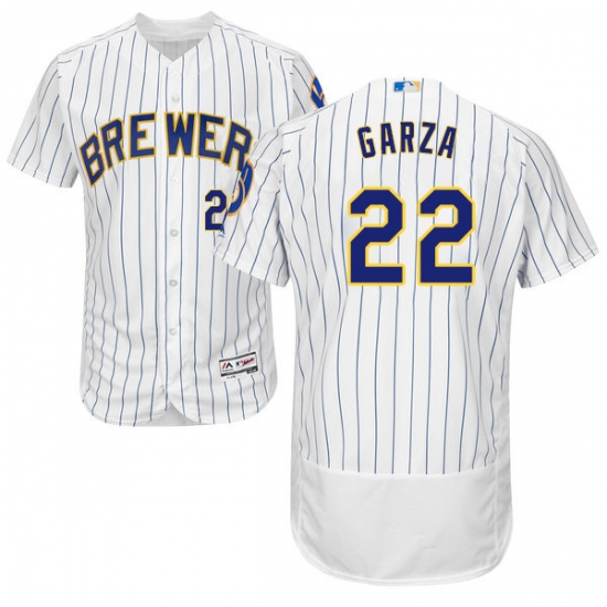 Men's Majestic Milwaukee Brewers #22 Matt Garza White Home Flex Base Authentic Collection MLB Jersey