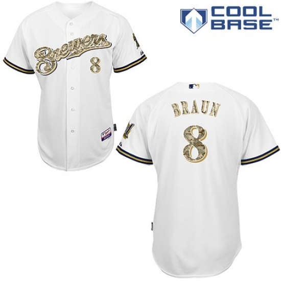 Men's Majestic Milwaukee Brewers #8 Ryan Braun Authentic White USMC Cool Base MLB Jersey