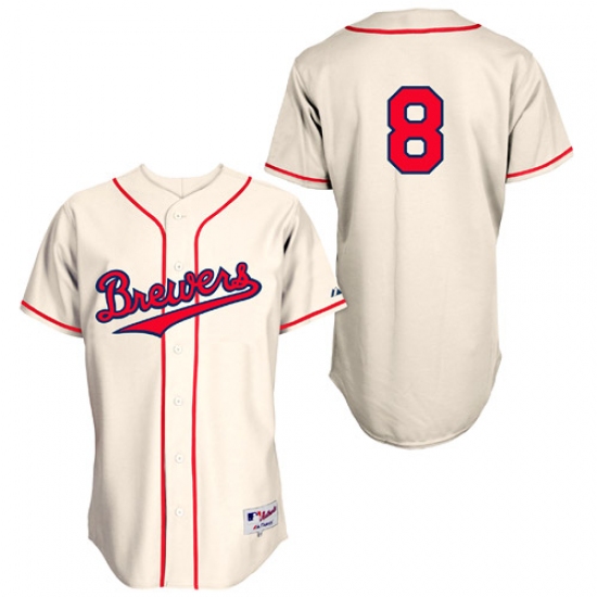 Men's Majestic Milwaukee Brewers #8 Ryan Braun Replica Cream 1948 Turn Back The Clock MLB Jersey