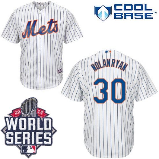 Men's Majestic New York Mets #30 Nolan Ryan Replica White Home Cool Base 2015 World Series MLB Jersey