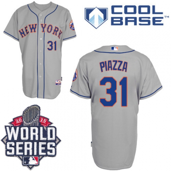 Men's Majestic New York Mets #31 Mike Piazza Authentic Grey Road Cool Base 2015 World Series MLB Jersey