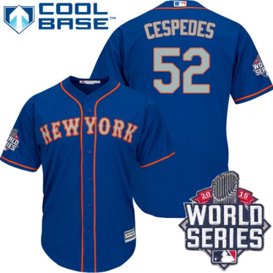 Men's Majestic New York Mets #52 Yoenis Cespedes Replica Royal Blue Alternate Road Cool Base 2015 World Series MLB Jersey