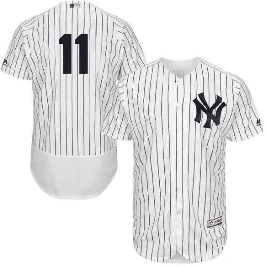 Home>MLB>New York Yankees>Brett Gardner>Men's Majestic New York Yankees #11 Brett Gardner White Home Flex Base Authentic Collection MLB Jersey