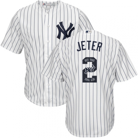 Men's Majestic New York Yankees #2 Derek Jeter Authentic White Team Logo Fashion MLB Jersey