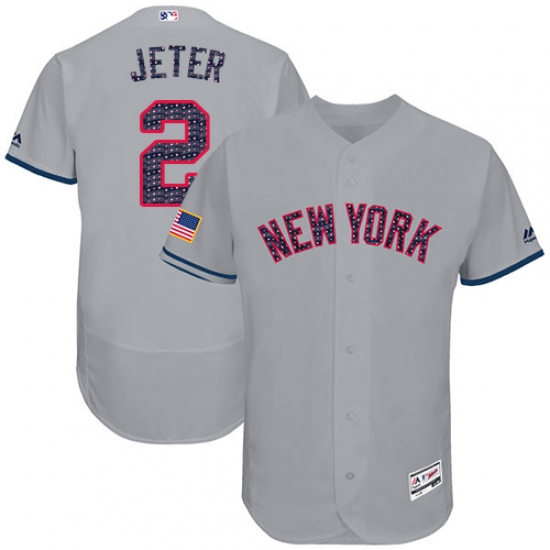Men's Majestic New York Yankees #2 Derek Jeter Grey Stars & Stripes Authentic Collection Flex Base MLB Jersey