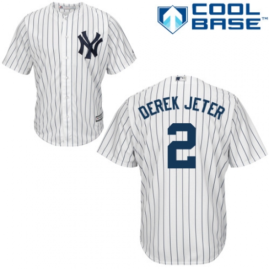 Men's Majestic New York Yankees #2 Derek Jeter Replica White Home MLB Jersey