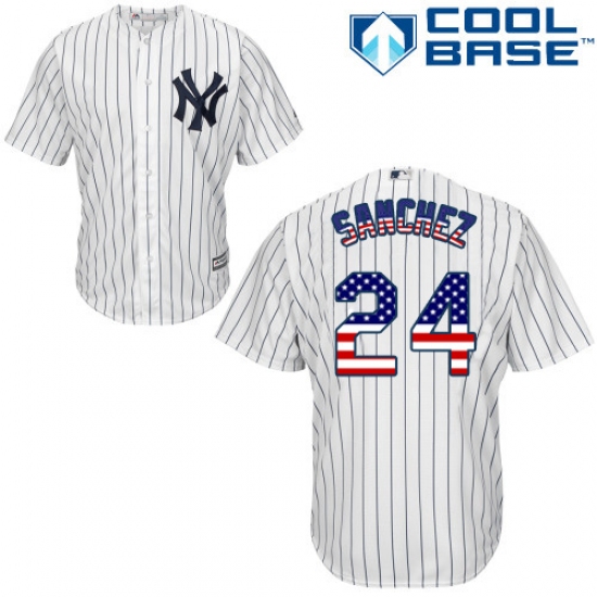 Home>MLB>New York Yankees>Gary Sanchez>Men's Majestic New York Yankees #24 Gary Sanchez Authentic White USA Flag Fashion MLB Jersey
