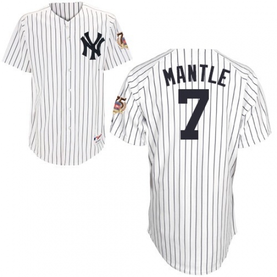 Men's Majestic New York Yankees #7 Mickey Mantle Replica White 75TH Patch MLB Jersey