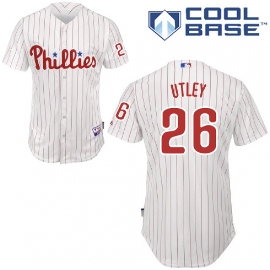 Men's Majestic Philadelphia Phillies #26 Chase Utley Replica White/Red Strip Home Cool Base MLB Jersey