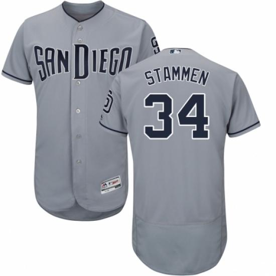 >Men's Majestic San Diego Padres #34 Craig Stammen Authentic Grey Road Cool Base MLB Jersey