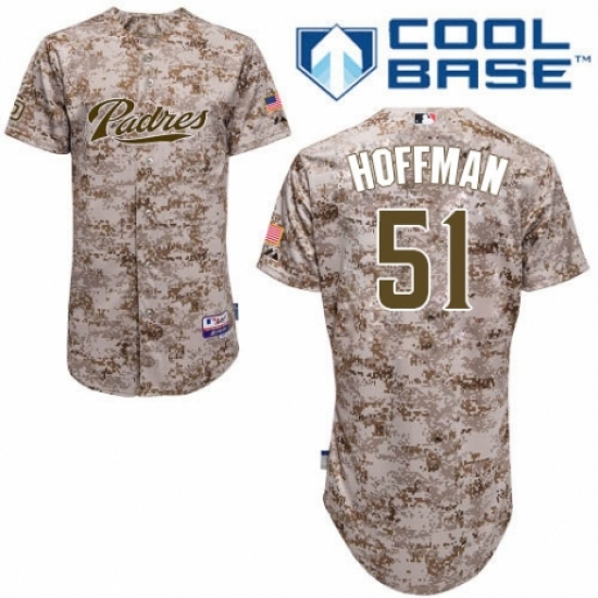 >Men's Majestic San Diego Padres #51 Trevor Hoffman Authentic Camo Alternate 2 Cool Base MLB Jersey