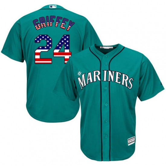 Home>MLB>Seattle Mariners>Ken Griffey>Men's Majestic Seattle Mariners #24 Ken Griffey Authentic Teal Green USA Flag Fashion MLB Jersey